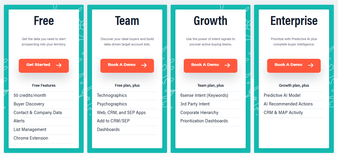 6Sense has a free plan that provides 50 identification credits/month, basic contact and company data, and access to some of its core features.