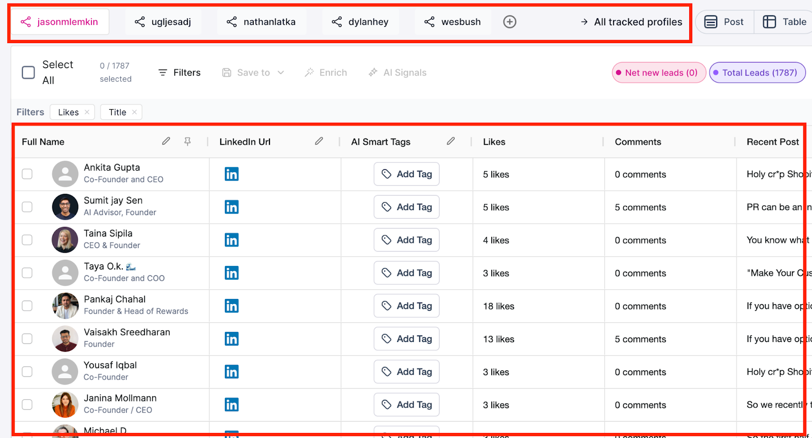 Trigify also tracks LinkedIn activity and social signals of specific LinkedIn accounts you want to close.