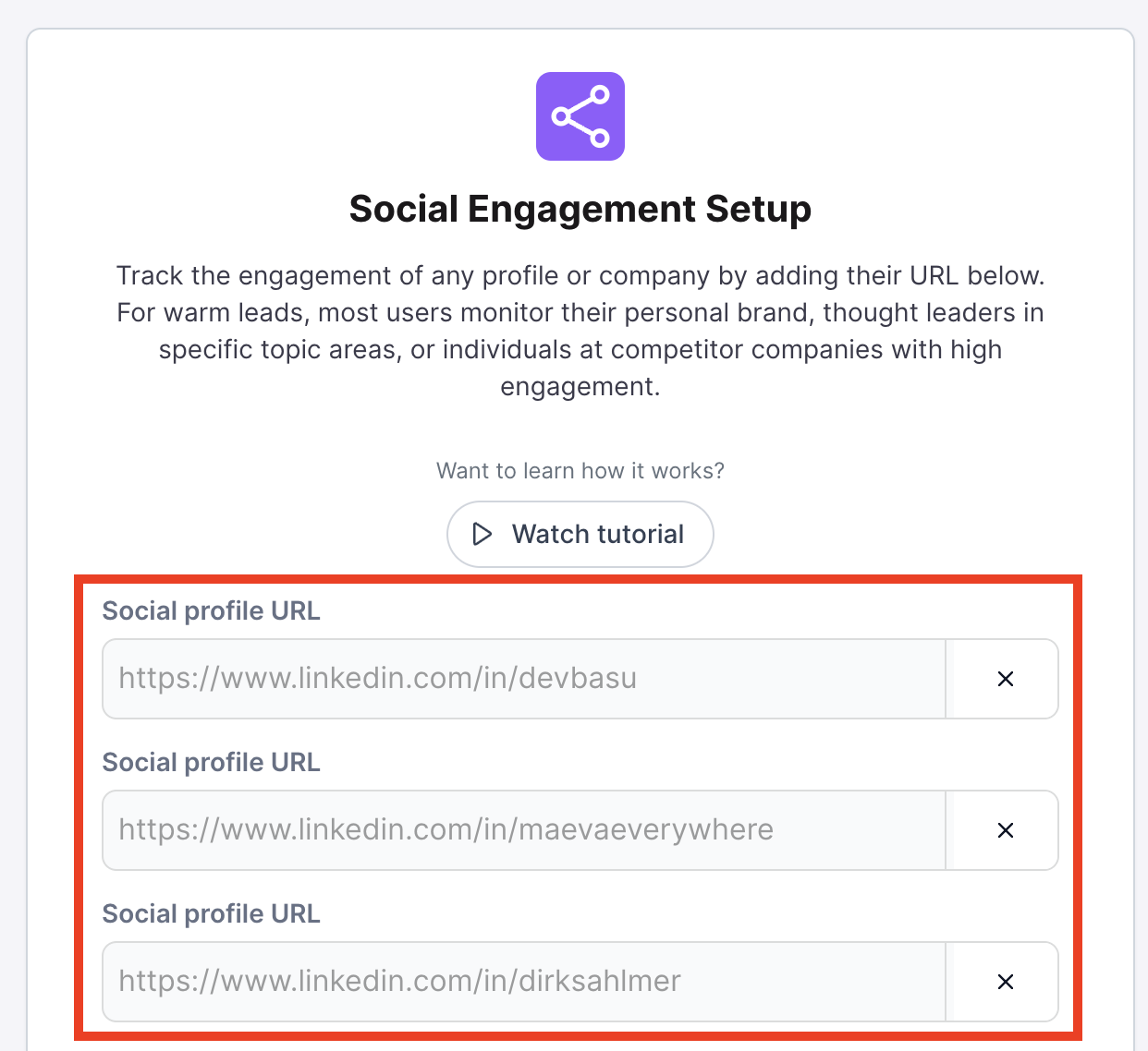 The process is the same as above, just instead of putting your LinkedIn profile URL in the Engagement Setup, put the LinkedIn profile URL of your competitors: