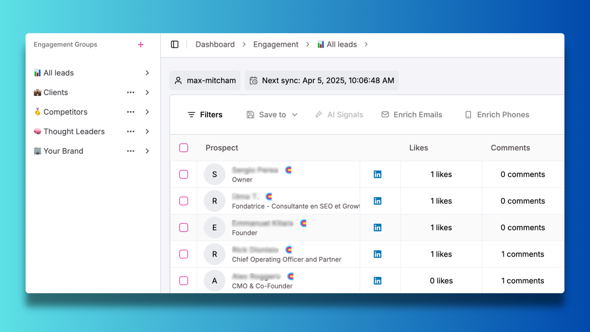 At the core of Brady's success is Trigify's social approach to prospecting, making it easier for users to reach out with LinkedIn sales automation with relevant, fresh data. Unlike traditional prospecting tools that rely solely on demographic data, Trigify identifies prospects based on their actual engagement and interests.