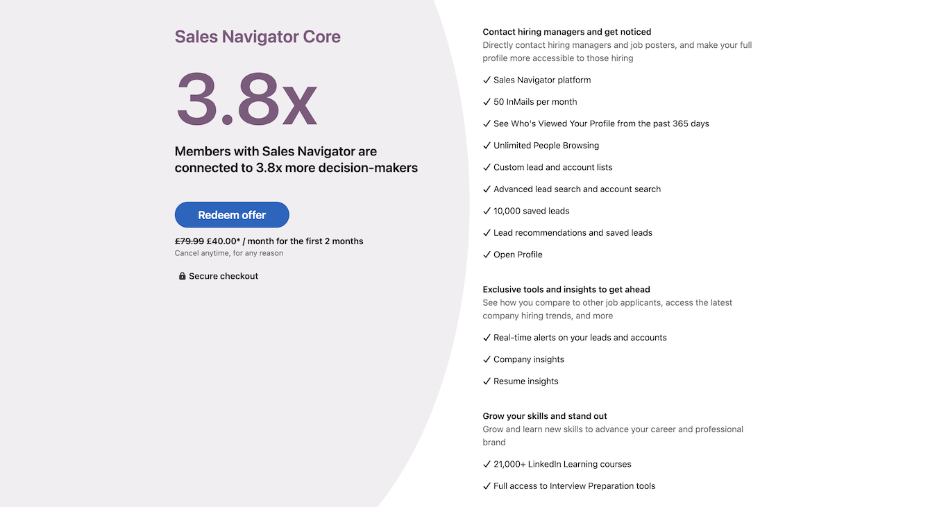 Pricing: LinkedIn Sales Navigator offers plans starting at $99 per month, with team plans available at higher rates depending on the number of users and additional features required.